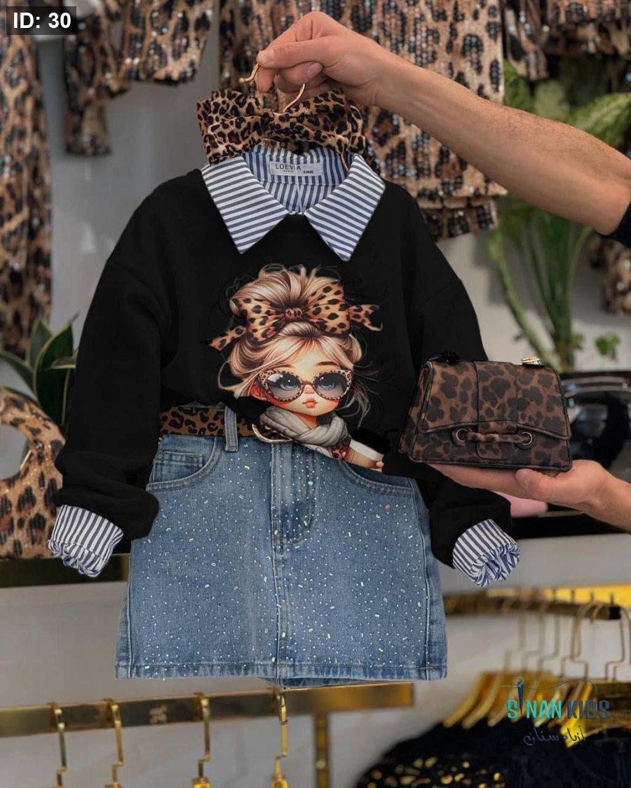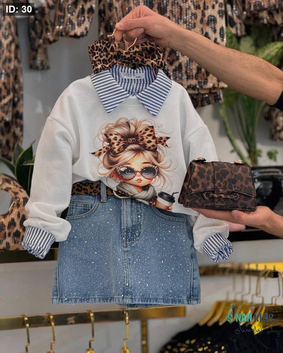 طقم بناتي تنورة جينز دجيتال